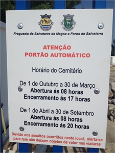 Informamos que está implantado um portão automático no cemitério dos foros de salvaterra e os horários são: